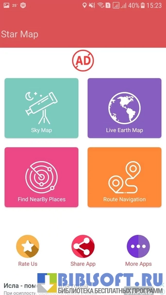 Sky Map 3D – увлекательное Android приложение для исследования звездного неба в ночное и дневное время суток. Любители астрономии смогут находить планеты, звезды, созвездия, искусственные спутники и наблюдать за ними. Может использоваться как обучающее пособие преподавателями астрономии и естествознания. Для определения текущего местоположения пользователя применяется GPS.