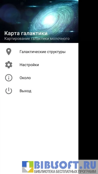 Карта галактики – интерактивная трехмерная карта космического пространства для Android. Позволяет перемещаться по виртуальной 3D-модели галактики Млечный Путь, в пределах от сверхмассивной черной дыры созвездия Стрельца до руки Норма-Внешней спирали.