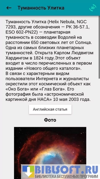 - Вывод подробного описания выбранного небесного тела из электронной энциклопедии Википедия;