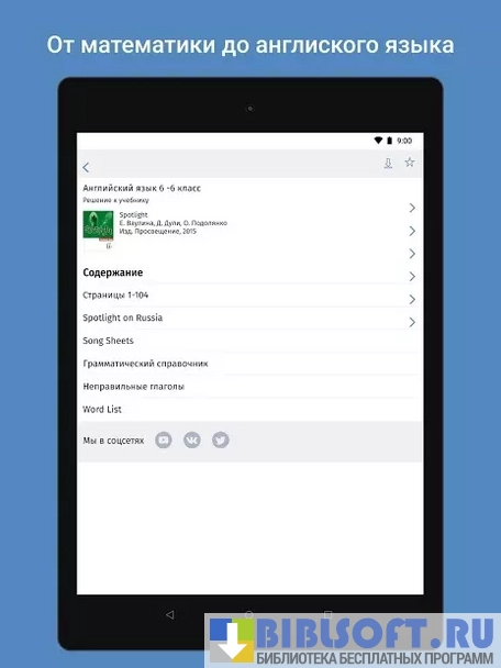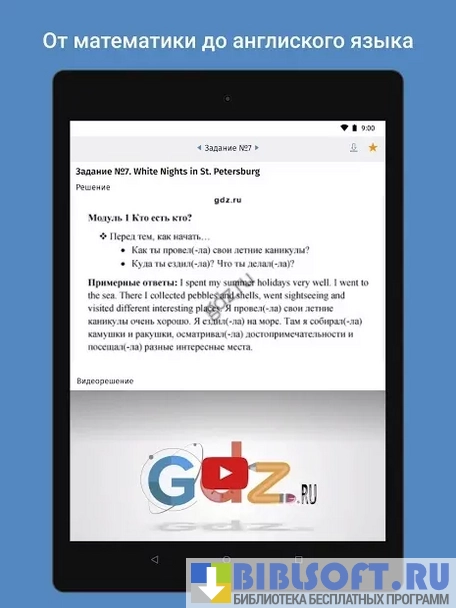 - обширная база ответов для школьных учебников и рабочих тетрадей;