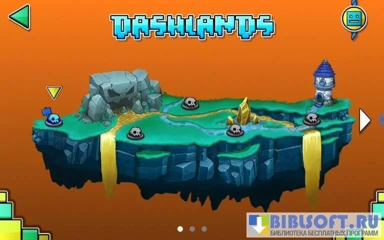 Geometry Dash World для Android – классический двухмерных «платформер» с препятствиями. Квадратик, которым управляет игрок, неустанно движется вперед. Однако, несмотря на неудержимое рвение достичь финальной цели, квадратик отнюдь не всесильный и его остановит любое препятствие на пути. Заблаговременно предугадывая оптимальную траекторию «обхода» препятствий, игроку нужно добраться до конца карты.