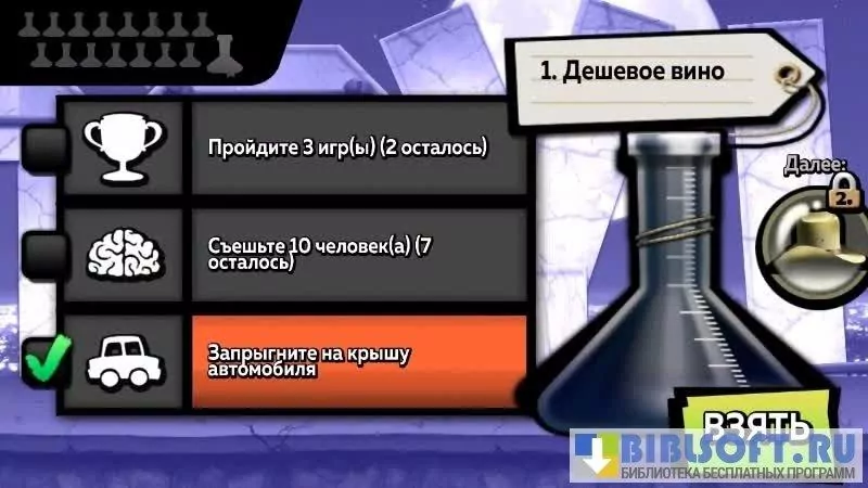 Во время своего бега зомби должны выполнять различные задания, например, съесть определенное количество людей, прыгнув, клонировать несколько себе подобных существ и пр. Выполнение заданий приносит игроку дополнительные суммы денег.