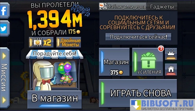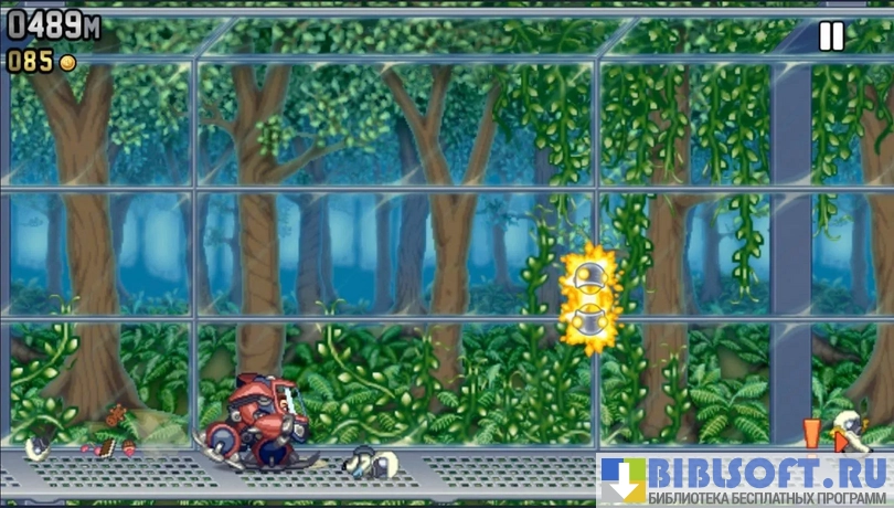 Jetpack Joyride - аркадный раннер для Android, в котором командой ученых разрабатываются передовые технологии. В распоряжении главного героя попадает одна из них - реактивный ранец. Изначально в него встроен только пулемет, но впоследствии будут открываться новые механизмы, которые покупаются за внутриигровую валюту. С их помощью можно прокачать ранец по полной. Но это не единственное средство передвижения - по локациям разбросаны бонусы, среди которых большой механический дракон, мотоцикл и даже самолет. Управление ранцем настолько простое, насколько это вообще возможно - когда удерживаешь палец на экране главный герой поднимается вверх, а стоит опустить его, как он начинает снижаться.