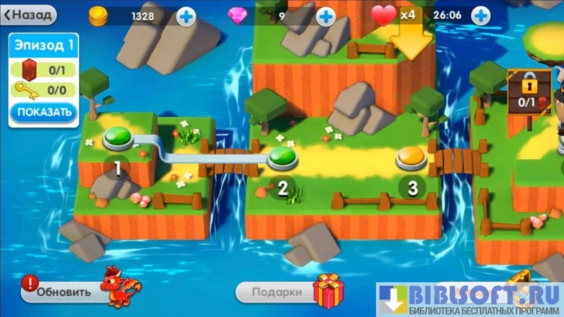 - Находите специальные ключи от бонусных уровней, чтобы, успешно пройдя такой уровень, получить еще больше монеток, алмазов и кристаллов;