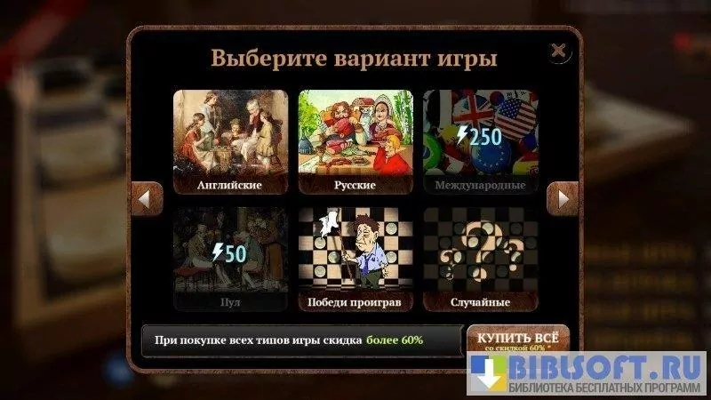 - более 100 видов ярких и красочных шашек на выбор и 4 разновидности дизайна доски;