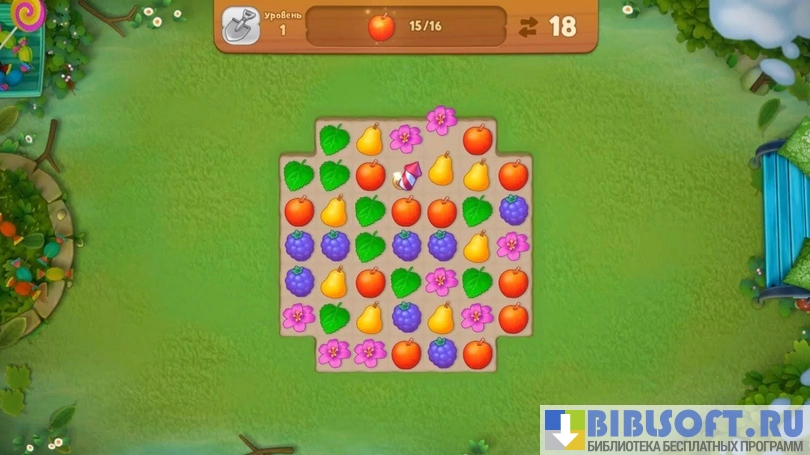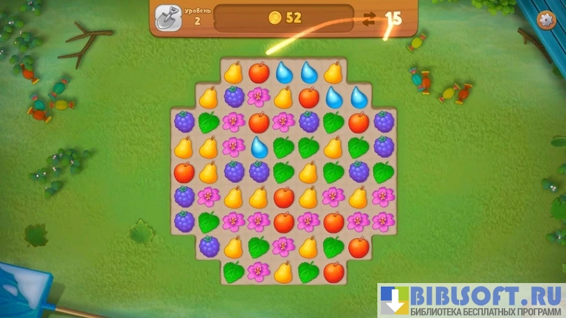 Суть головоломки в игре: собрать 3 одинаковых фрукта вряд, f сделать это нужно за наименьшее количество ходов.