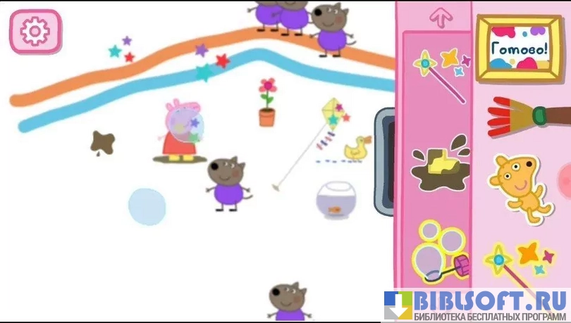 - Есть возможность менять фон, выбирая 1 из 3 рисунков с Пеппой.