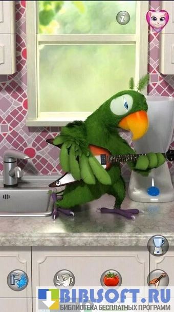 Главная «фишка» подобных игр – повторение произнесенных игроком фраз длительностью до 30 секунд. Пьер имеет смешной скрипучий голос – такой, как и положено попугаю. А еще он умеет играть на электрогитаре легендарную композицию Smoke on the Water группы Deep Purple. Чтобы питомец исполнил мелодию правильно, игроку следует кликать в такт по пиктограмме с изображением инструмента.