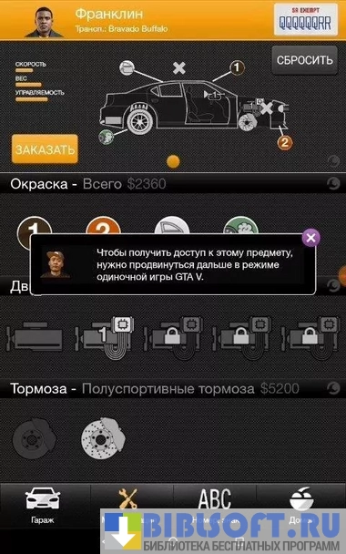 В гараже есть возможность полностью тюнинговать все свои автомобили: от смены покрышек до сигнала гудка. Кроме основных улучшений, доступна покраска и смена номеров на любые символы.