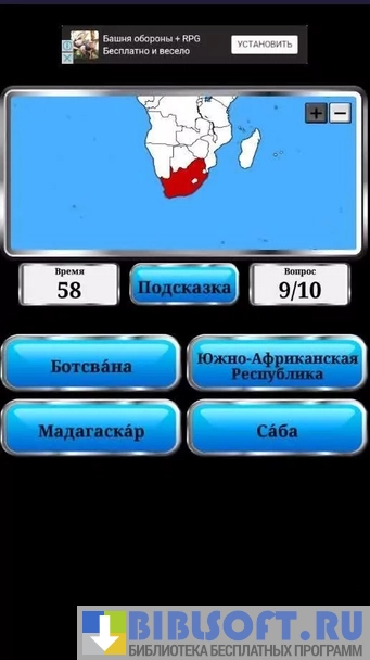 World Geography (География мира) – занимательная викторина для Android, которая поможет ближе узнать географию. Вопросы в данной игре затрагивают не только местоположение стран, а так же их религию, валюту и даже среднюю продолжительность жизни граждан.