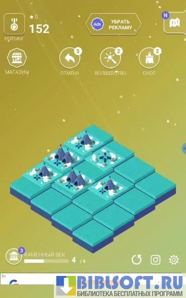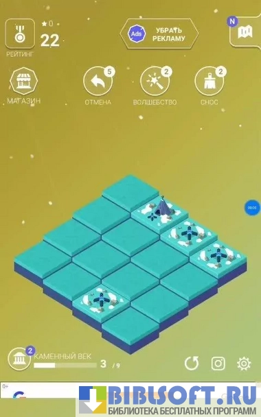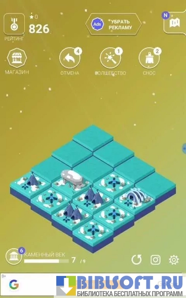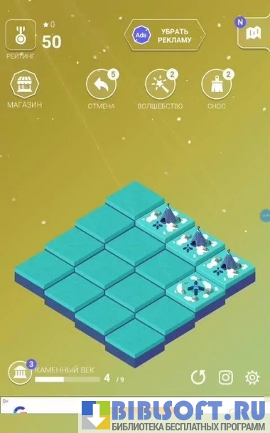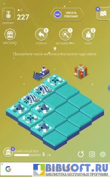- помощь в виде отмены последнего хода, повышения уровня одного блока или сноса построек, мешающих правильному развитию;