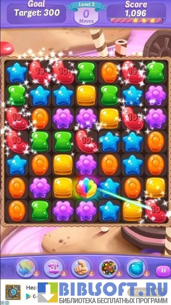 - выставьте 3 одинаковых конфеты в ряд, чтобы вы звать взрыв и очистить участок доски;