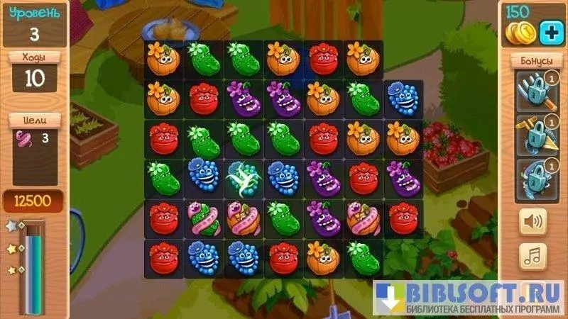 Для сбора урожая необходимо складывать овощи и фрукты в ряд, минимум по три одинаковых элемента. Ситуация осложняется еще и тем, что во время уборочной компании нужно заранее готовиться к посевной – выкорчевывая сорняки, а также убивая паразитов, насекомых и грызунов.