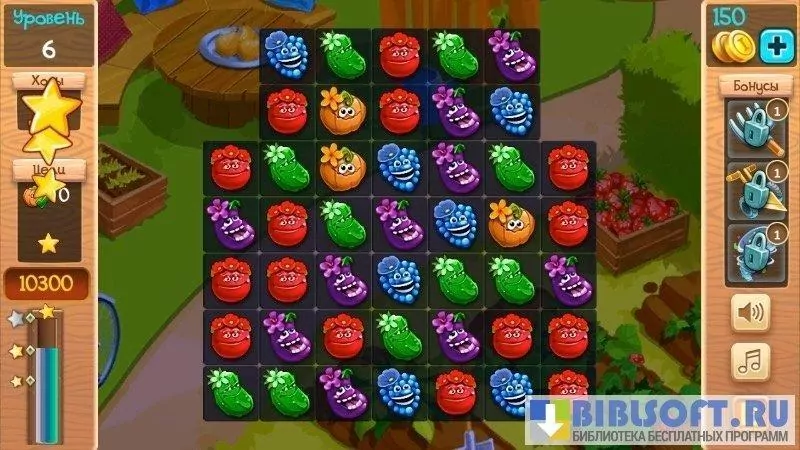 - Складывайте одинаковые овощи и фрукты в ряд по три и больше, чтобы «собрать» их;