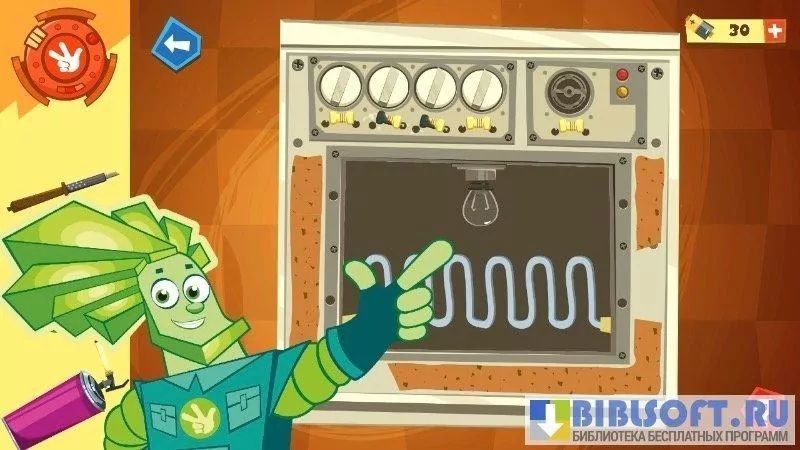 4 шаг — замена. После детали чинятся или заменяются на новые(прикрутить болты, припаять резистор или конденсатор). За выполненные задания даются 2 батарейки. Так же их можно найти в комнатах под мебелью. За каждую подсказку - минус 2 батарейки.