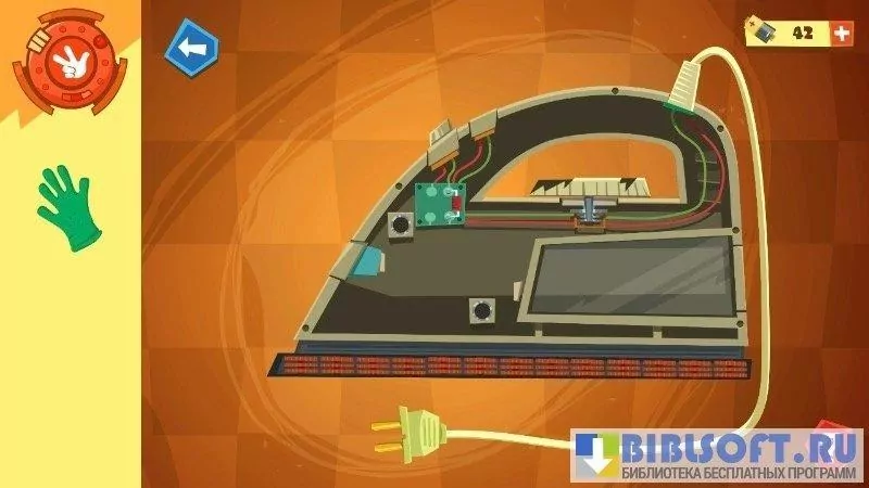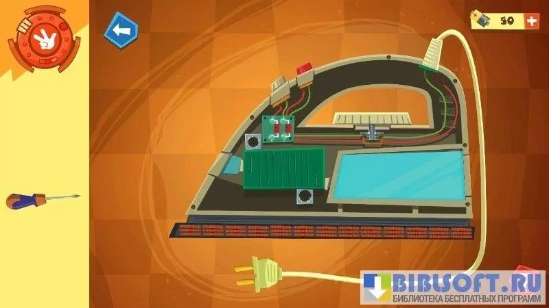 2 шаг — осмотр. С прибора снимается крышка и все «внутренности» на виду. Есть подсказки: сломанные детали изображены с трещинами, если деталь следует выбросить, то на экране появляется ладонь.
