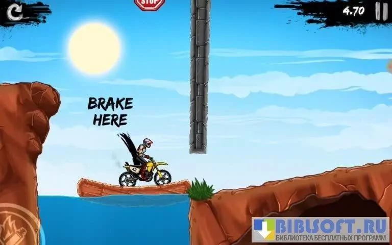 Bike Rivals – экстремальные гонки для Android на мотоцикле по сумасшедшим трассам с препятствиями. Двухмерная графика выполнена в мультяшном стиле. Хорошо прорисован гонщик, мотоцикл и ландшафт трассы. Управление простое – газ, тормоз и наклоны мотоцикла вперед-назад. Всего 4 нажатия по экрану дают возможность выполнять разнообразные прыжки и трюки на мотоцикле.
