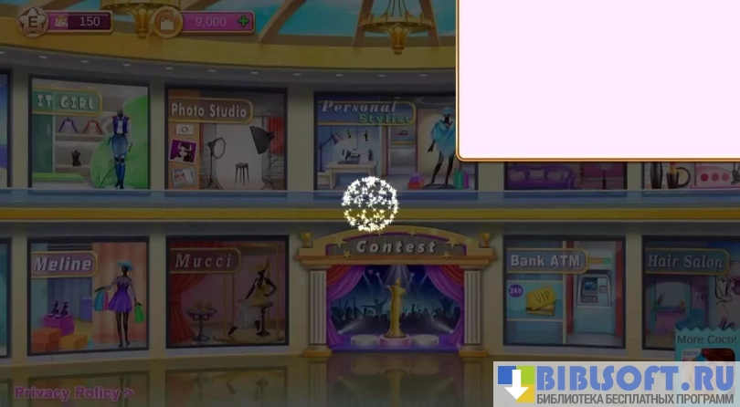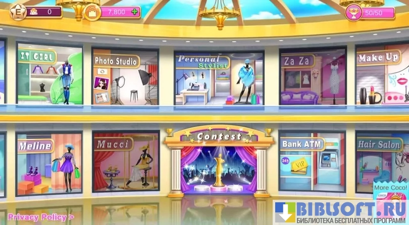 После посещения всех этих замечательных мест, ты можешь соревноваться с другими девочками, кто из вас лучше потрудился над собой. Для этого в центре торгового комплекса предусмотрен роскошный подиум! Он находится на первом этаже в локации Contest.