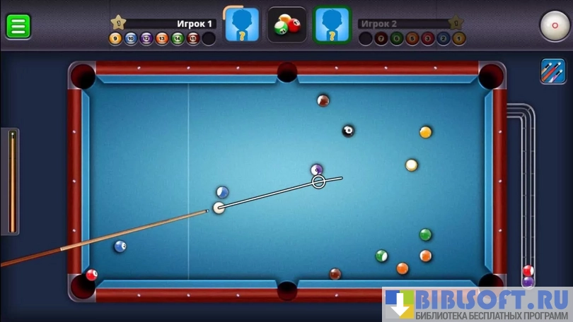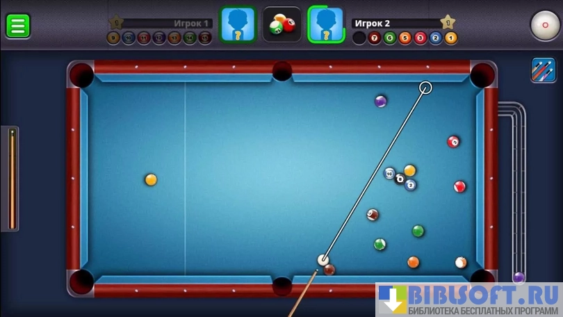 8 Ball Pool - симулятор настольной игры в бильярд для Android. Игра выполнена в двухмерной плоскости, объемные только шары. Игроки за столом не отображаются, видны только стол и кий. Можно контролировать направление и силу удара, которые отображаются во время подготовки к удару в виде белых линий.