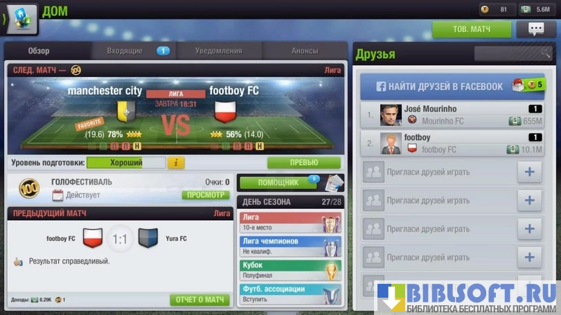 Top Eleven (Футбольный Менеджер) - многопользовательская сетевая игра, позволяющая создать футбольную команду с нуля и привести ее к международному успеху. Игра переведена на 30 языков мира.
