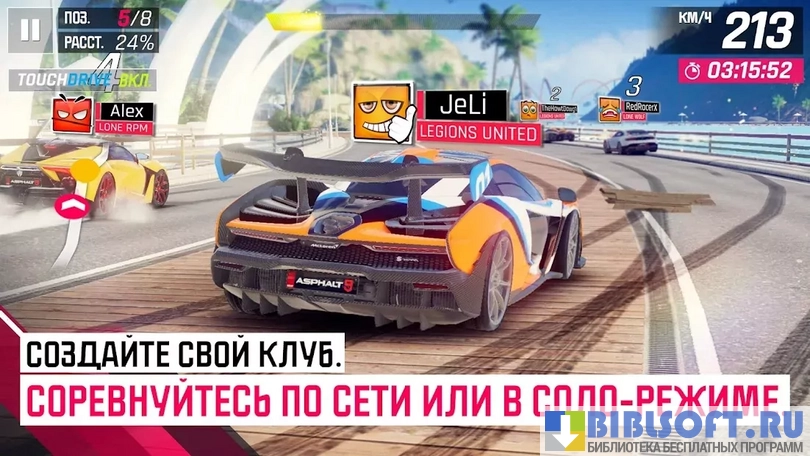 Выбирайте лучшие авто от Lamborghini, Ferrari и других брендов, жмите на газ, выполняйте опасные трюки и испытайте настоящий драйв, обгоняя соперников на реалистичных локациях.