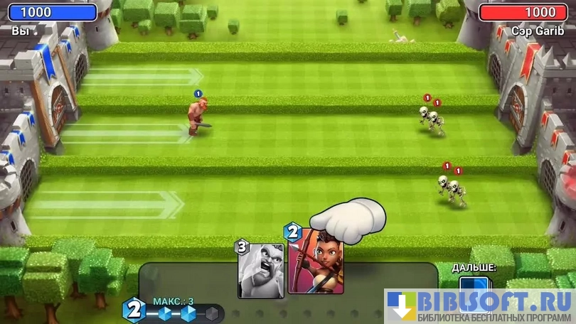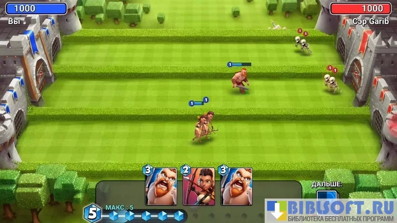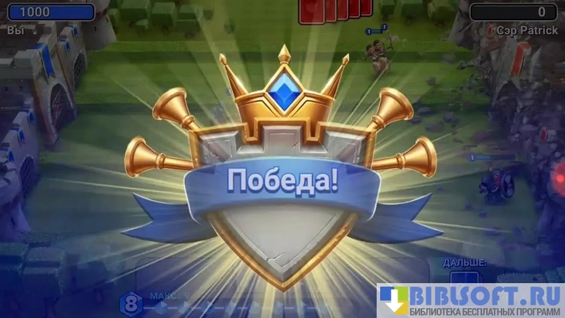 - За победу игрок получает кубки, карты с воинами с особыми свойствами и улучшение позиций в рейтинге.