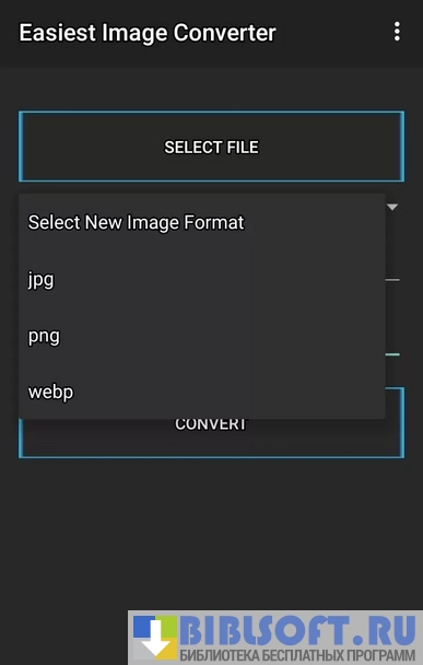 Image Converter Lite – простая полезная программа для преобразования графических файлов на Android устройствах. С помощью кнопки обзора найдите нужное изображение, перетащите его из галереи на главную панель. Выберите желаемый формат, название файла и место его сохранения.
