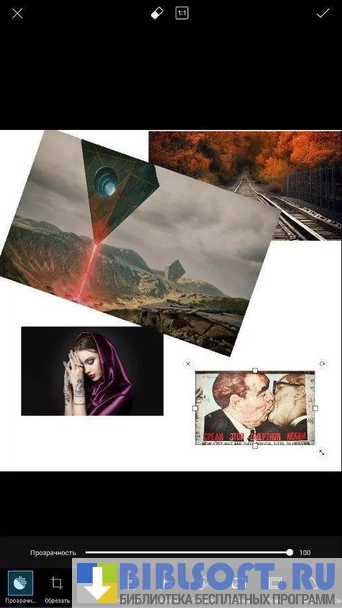 В PicsArt можно создавать различные коллажи с использованием готовых шаблонов и фонов, а инструмент «ножницы» дает возможность делать из фото стикеры и делится ими с другими пользователями приложения. Функция для создания коллажей предоставляет более 500 шаблонов и новых изображений, которые используются в качестве фона.