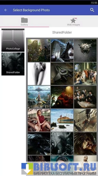 - в качестве источников фотографий может быть ваша личная галерея, доступна лицензированная коллекция фонов. Есть возможность поиска фотографий в Интернете.