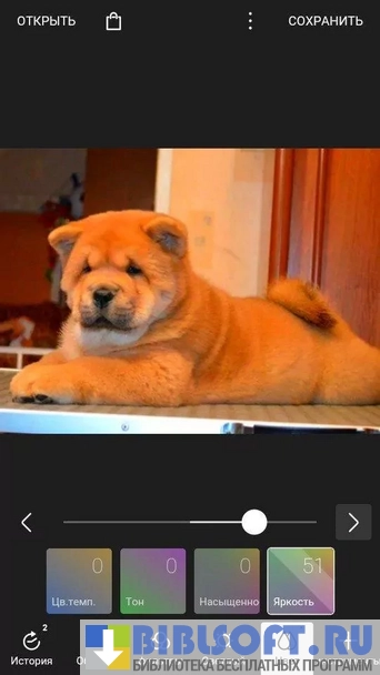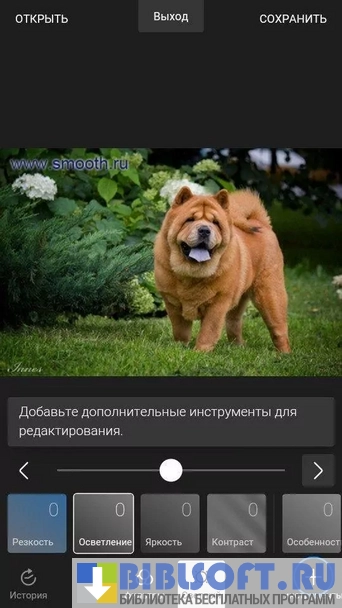 - улучшение разрешения фото во время редактирования и после сохранения в памяти устройства;