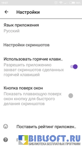 - Возможность отправки скриншота во социальные сети и мессенджеры;