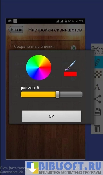 - поддержка редактирования готовых скриншотов с помощью кистей с разными цветовыми решениями;