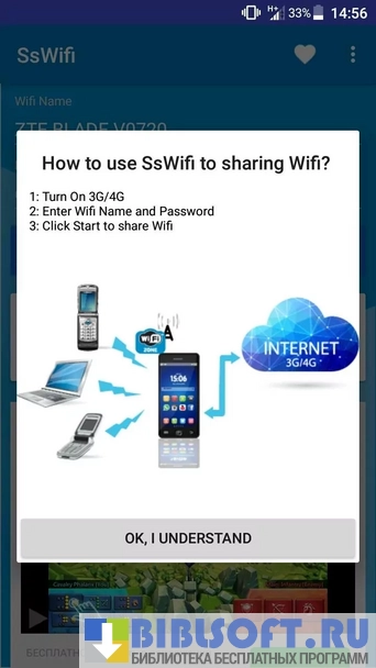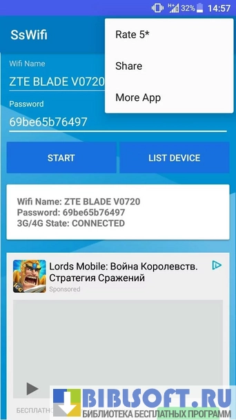 Wifi Hotspot Free – сервисная утилита для Android устройств, позволяющая создавать из портативного гаджета полноценную точку доступа Wi-Fi в один клик.