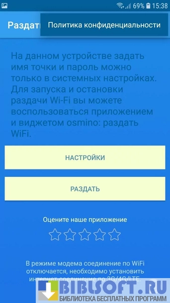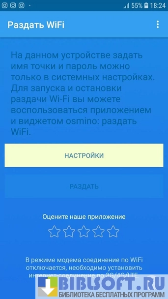 Osmino Share WiFi Free – сервисный виджет для Android устройств, позволяющий перевести настройки WiFi-модуля пользовательского аппарата в режим Точки доступа в один клик.
