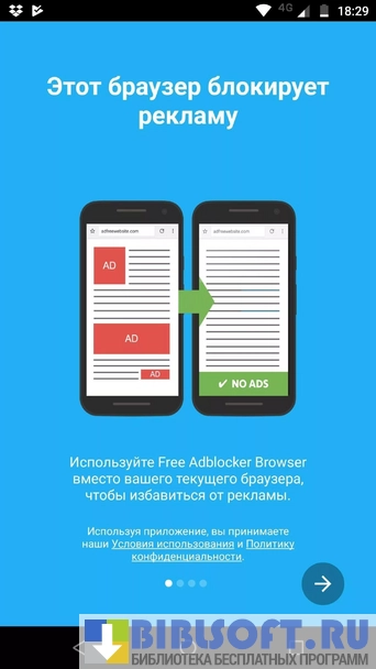 Free Adblocker Browser - симбиоз браузера с «антирекламной» утилитой AdBlocker для Android. Умеет определять, идентифицировать разновидность и блокировать рекламные блоки. Предотвращает воспроизведение рекламы перед флеш-видеороликами.