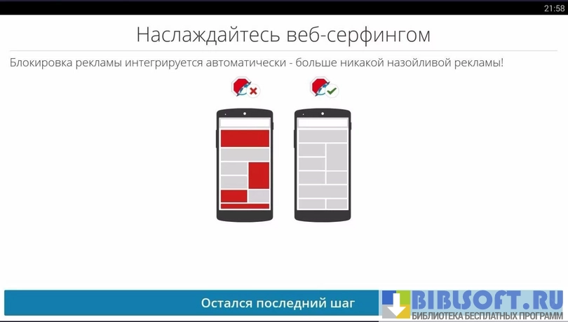 - Снижает риск заражения аппарата благодаря уменьшению вероятности случайно кликнуть на вирусную ссылку, замаскированную под рекламу.