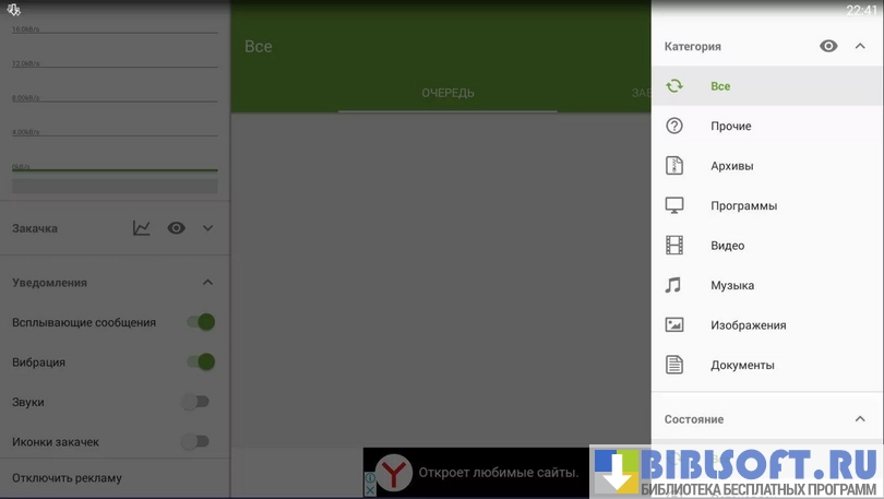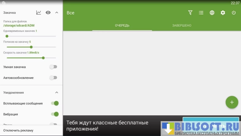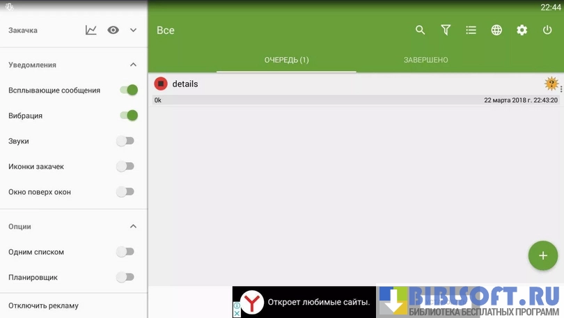 Менеджер загрузок является одним из наиболее продвинутых среди подобных приложений для мобильных устройств. В панели уведомлений отображается процесс скачивания. Можно планировать загрузки на определенное время.