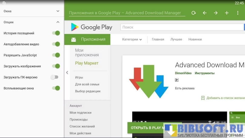 Advanced Download Manager для Android – приложение для удобного скачивания файлов на портативном устройстве с ускорением загрузки в несколько раз. Поддерживается докачка файлов и параллельная загрузка. Поддерживается перехват файлов из браузеров.