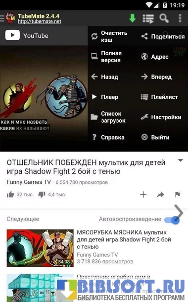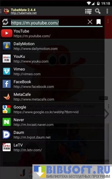- встроенный браузер для поиска нужных роликов;