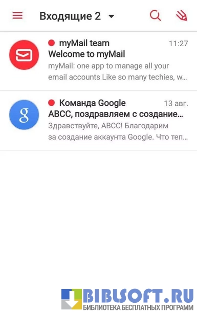 MyMail – многофункциональный почтовый клиент для Android. Поддерживает возможность синхронизации с большинством почтовых сервисов использующих IMAP-/POP3-/SMTP-протокол, в т.ч. – Gmail, Hotmail, iCloud, Mail.Ru, Outlook.com, Yandex, Yahoo и Rambler.