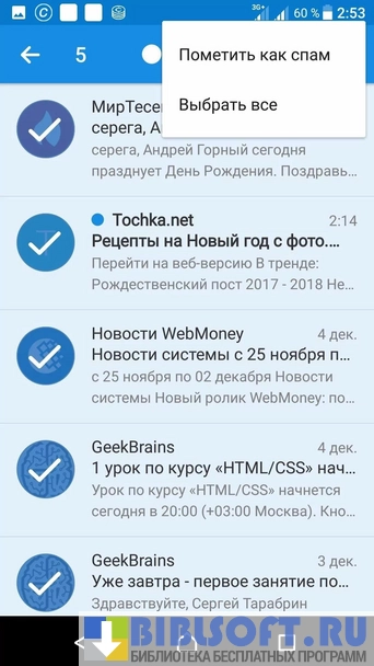 - Быстрые действия с письмом. Переместить либо удалить сообщение можно за пару секунд. Не обязательно открывать письмо, ждать загрузки.