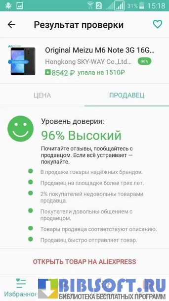 После установки приложение позволяет не только выбрать товар, но и сделать его покупку максимально безопасной. Для этого в приложении имеются все необходимые функции для определения надежности продавца. А наличие обзоров позволит узнать максимум необходимой информации о выбранных товарах.