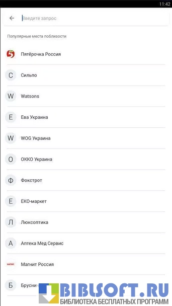 Информация о совершённых транзакциях размещается на главной странице приложения. Там же есть сведения о находящихся поблизости магазинах и активных в данный момент бонусов.