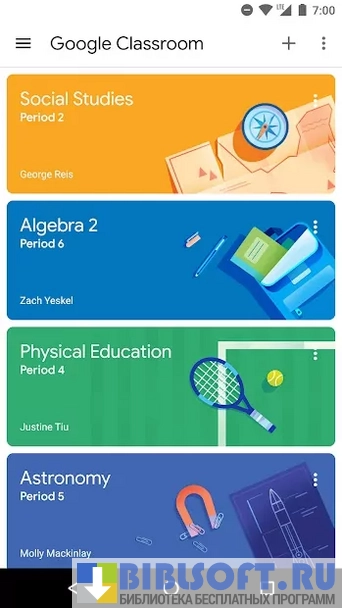 Google Classroom – интерактивный многофункциональный мессенджер для Android-устройств. Ориентирован на проведение удаленного обучения – онлайн-уроков, лекций, вебинаров и т.д. Также может быть использован в качестве платформы для безопасного распространения записей обучающих материалов, с целью последующего оффлайн просмотра.