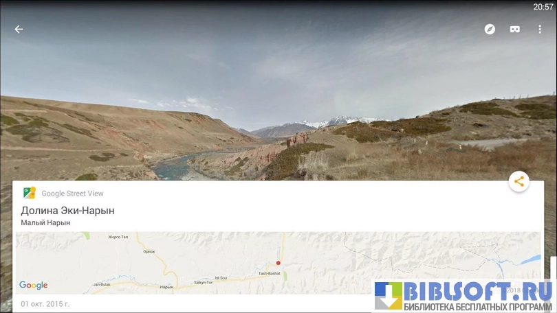 Google Street View – визуализатор трехмерных панорам и виртуальных 3D туров для Android. Приложение синхронизировано с крупнейшим информационным ресурсом планеты – базой данных корпорации Google, благодаря чему в нем можно найти буквально любую достопримечательность мира.
