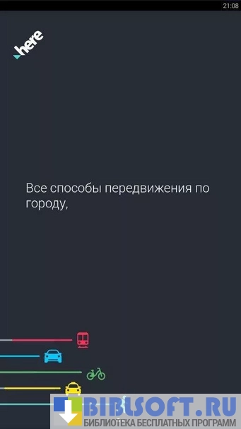 HERE WeGo – приложение для Android гаджетов, которое поможет проложить самый удобный маршрут к точке вашего назначения. Для этого нужно выбрать или скачать карту необходимого города и выбрать средство передвижения: пешком, велосипед, автомобиль, общественный транспорт, такси или другое из списка в приложении. Утилита предложит пользователю все возможные маршруты и опишет их.