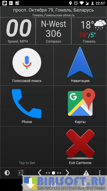 Car Home Ultra симбиоз GPS-навигатора, агрегатора метеоусловий и «помощника автомобилиста» для Android. Собирает, анализирует и визуализирует в графических виджетах данные о движении транспортного средства, его местонахождении, погоде вокруг и прочей «полезной для автомобилиста» информации.
