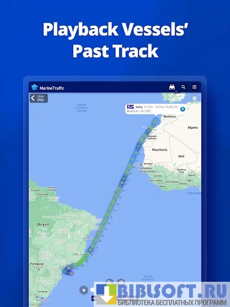 MarineTraffic – Android приложение, работающее в интеграции с автоматической системой идентификации AIS, с помощью которого можно получать реальные данные о местонахождении морских судов: координаты, курс и скорость следования, водоизмещение, государство, которому он принадлежит и т.д.