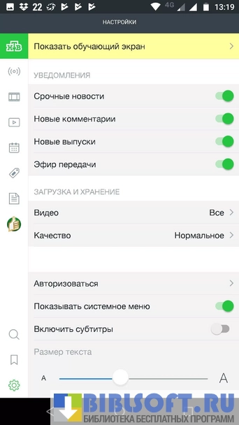 - получение уведомлений о начале любимых передач;