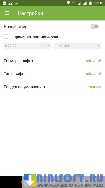 - Наличие ночной темы оформления;